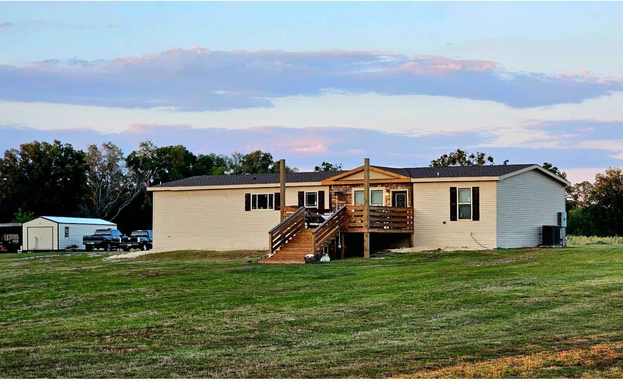 Discover the perfect blend of elegance and functionality in this beautifully crafted home, designed with entertaining in mind. Step into the spacious living room and dining area that flow effortlessly into a bright, modern country-style kitchen. This chef's paradise features handcrafted cabinets, generous countertop space, a large pantry, a center island workstation, and a convenient serving bar. The expansive family room invites relaxation and gathering, making it perfect for hosting. Retreat to the luxurious master bedroom, where double barn doors open to a stunning bathroom equipped with a walk-in closet, a platform soaking tub, a large shower, and dual sinks. With three king-sized guest bedrooms and well-appointed second and third bathrooms, this home ensures comfort and convenience for all. With the home nestled at the back & highest point of this 10-acre property, spectacular sunsets are abundant from the custom-built front porch. Large Oak Trees adorn this area and could be enhanced with some clearing. The exterior walls are constructed of 2x6 lumber, and there are water spigots installed for convenience at all 4 corners of the home. A 12x36 storage shed with custom shelving graces the backyard, complete with a 10x36 lean-to attached. Boating enthusiasts will appreciate the proximity to the historic Suwannee River, located just 3 miles away at the Dorothie Land boat ramp as well as the Gulf, 43 miles away. Schedule your showing today, don't miss out on this one!